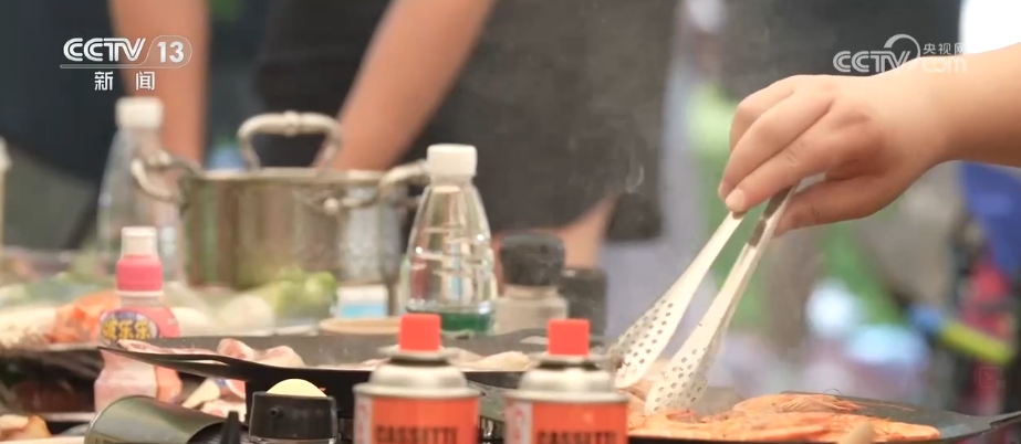 现在正是大樱桃成熟的季节,在景区的采摘园里,有不少游客正在体验亲手摘樱桃,也有人选择在附近的草坪上扎帐篷露营,架起炉灶体验一把户外烧烤的乐趣。同时,这里还提供了帐篷租赁服务,可以满足游客“轻装上阵”的露营需求。