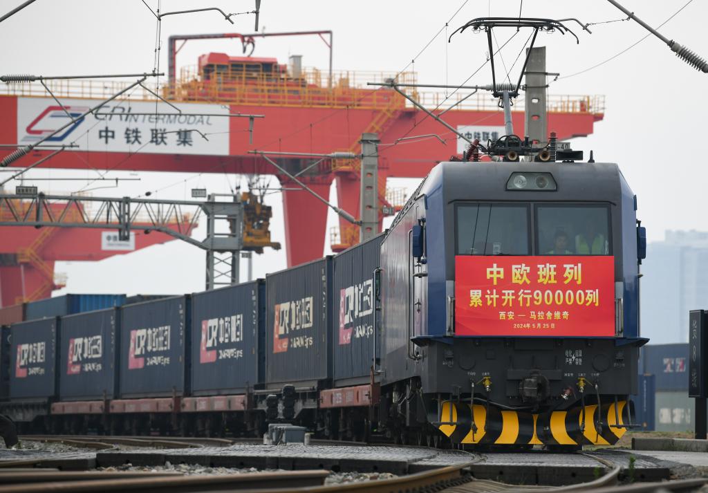 记者从中国国家铁路集团有限公司(下称国铁集团)获悉,2024年5月25日8时40分,随着X8157次中欧班列(西安—马拉舍维奇)从西安国际港站开出,至此中欧班列累计开行突破9万列,发送货物超870万标箱、货值超3800亿美元,保持安全稳定畅通运行。