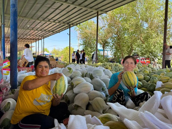 三堡乡阿瓦提村党支部委员亚生·阿不地日木说:“西瓜甜瓜大量成熟,我们本村的劳务经纪人组织本村的富裕的劳动力壮瓜、摘瓜,增加收入。”