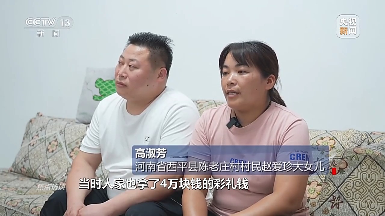 河南省西平县陈老庄村村民赵爱珍大女儿 高淑芳:当时,人家也拿了4万块钱的彩礼,但是我们没有要,我感觉“零彩礼”给我们家带来了幸福。后来我们村成立了“红娘协会”,我就积极加入了“红娘协会”,去各个农户家宣传低价彩礼的理念,让更多的人受益。