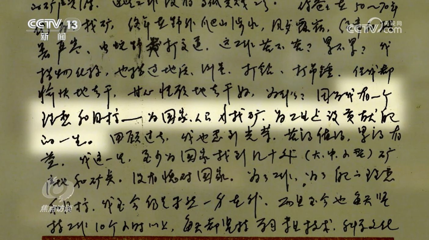 物化探高级工程师杨衍忠,在写给儿子的信中,重申着自己对祖国的热爱:“我有一个理想和目标——为国家、人民多找矿,为工业建设贡献自己的一生。”