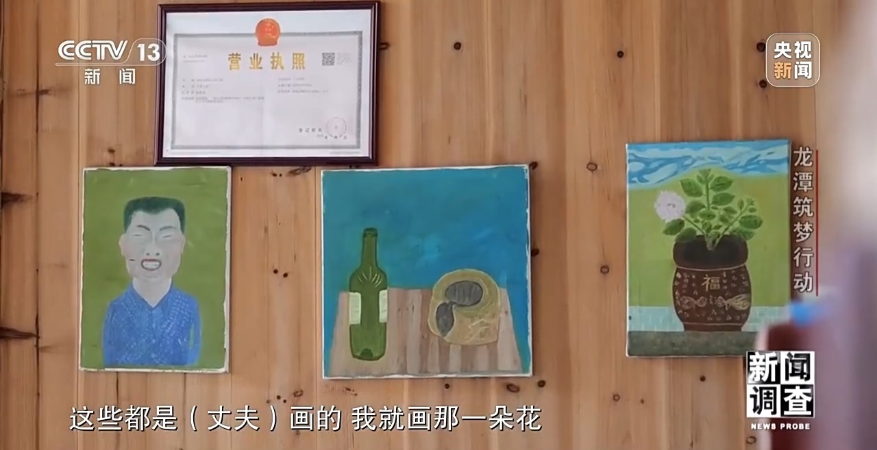 这些画都是民宿主人陈孝高和妻子的作品,2017年,陈孝高作为龙潭为数不多的留守村民,突然接到了村委会派下来的特殊任务,他们都要到林正禄的画室学习画画,这让老农民陈孝高一头雾水。