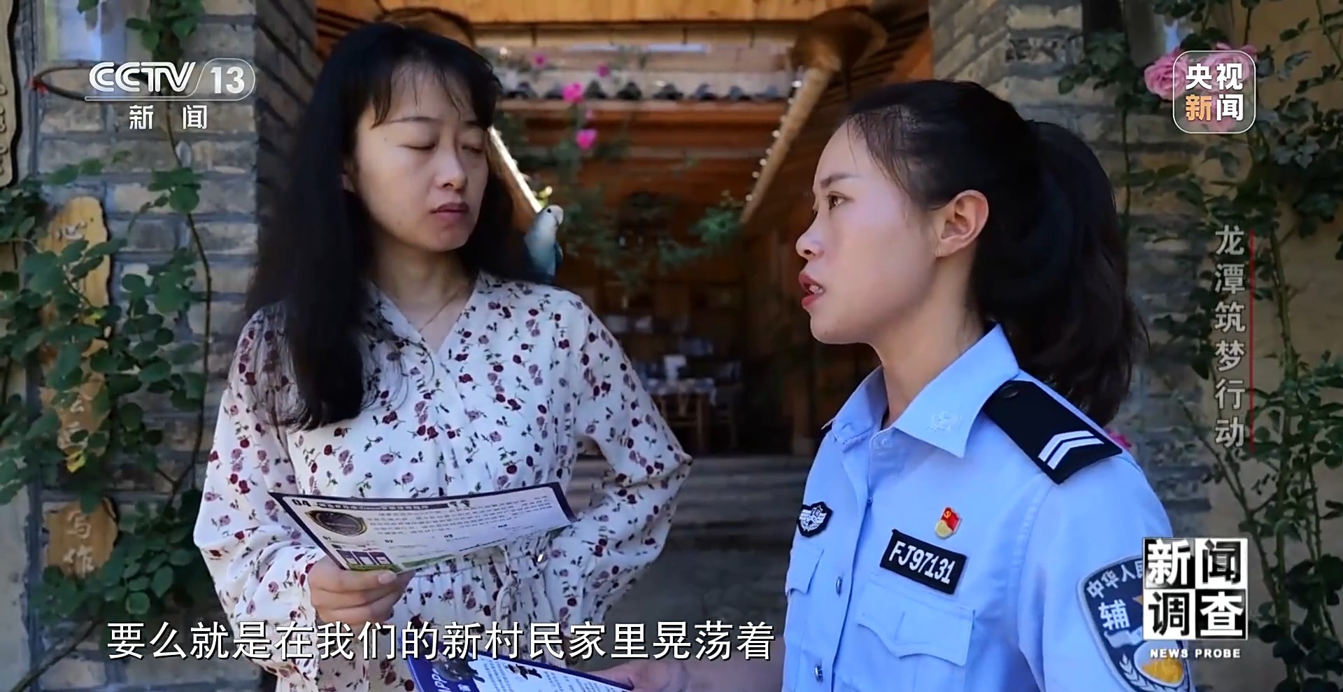 福建省屏南县公安局熙岭派出所辅警 陈小倩:“街溜子”,你会看见我可能整天都在街上晃荡,要么就是在新村民家里晃荡着。因为龙潭村的游客的流动性比较大,所以时不时我们走家串户,就是为了更好地了解来自全国各地的这些人在村里面一些动态。