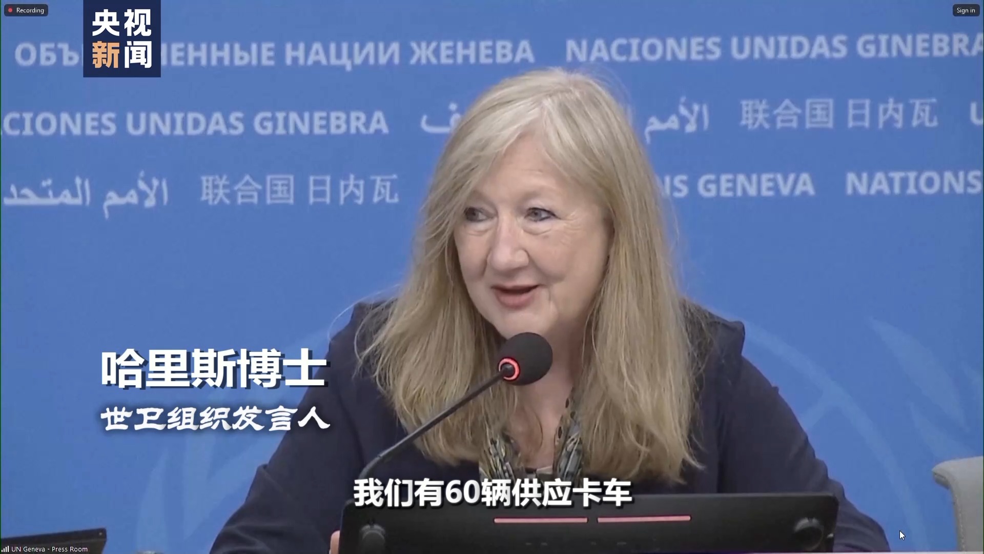 世卫组织发言人 哈里斯博士:由于边境关闭,我们有60辆供应卡车在阿里什等候,无法进入拉法。
