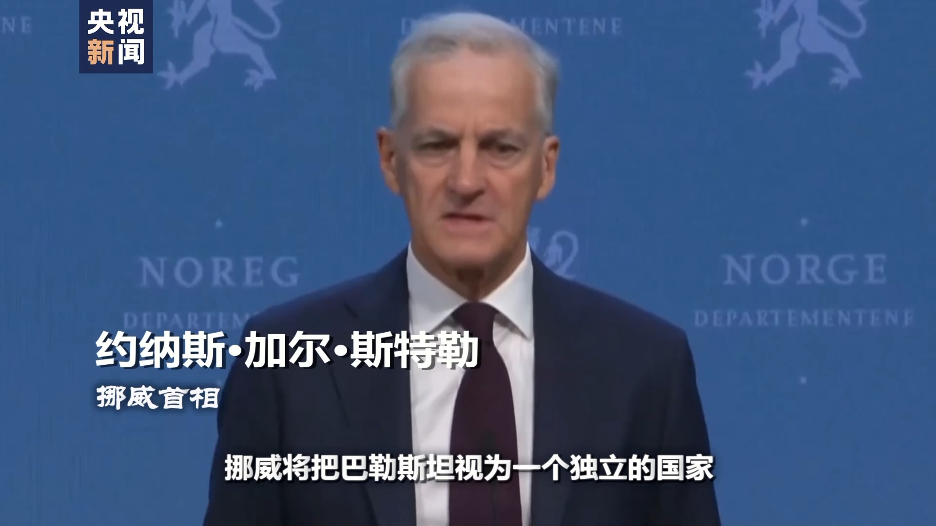 挪威首相 约纳斯·加尔·斯特勒:挪威将把巴勒斯坦视为一个独立的国家,享有因此赋予的所有权利和义务。