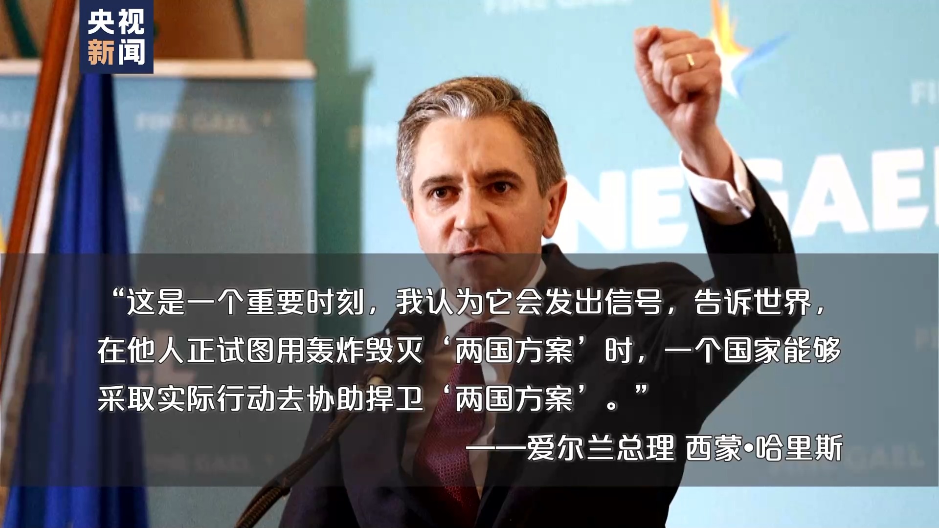 爱尔兰总理 西蒙·哈里斯:我们说过承认巴勒斯坦国的时刻越来越近了,现在这一时刻终于到了。这对爱尔兰和巴勒斯坦来说都是历史性的一天,重要的一天。