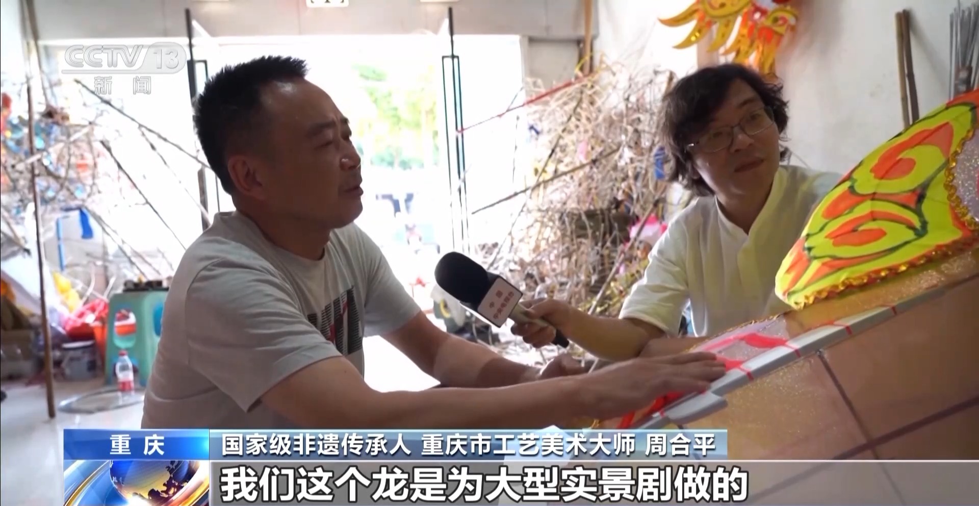 周合平告诉记者,龙灯彩扎这项非遗技艺有六百多年的历史,他是从小跟着爷爷学会的。家族三代人,参与和见证了龙灯龙舞在国庆50周年、60周年和70周年庆祝典礼上的大放异彩。