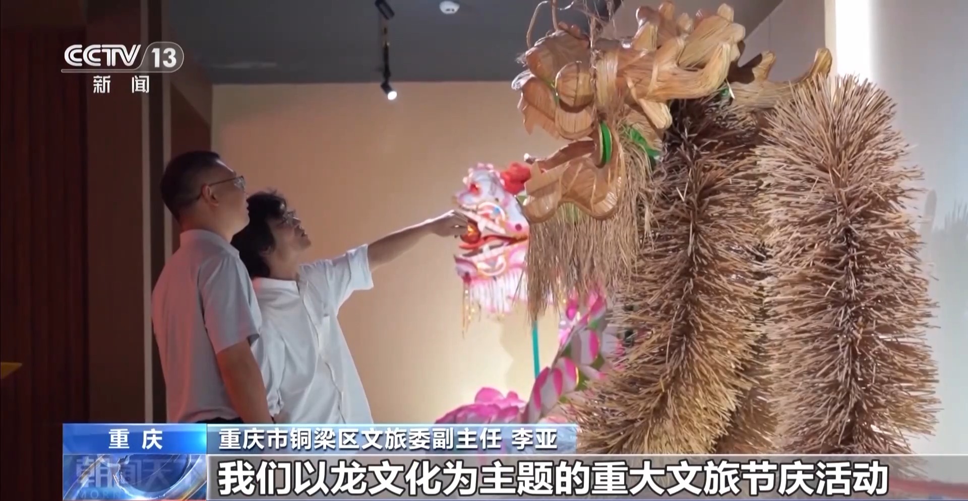 重庆市铜梁区文旅委副主任 李亚:我们以龙文化为主题的重大文旅节庆活动,带来的附加值也是相当大的。整个产业链的话,估计会超过30亿元。