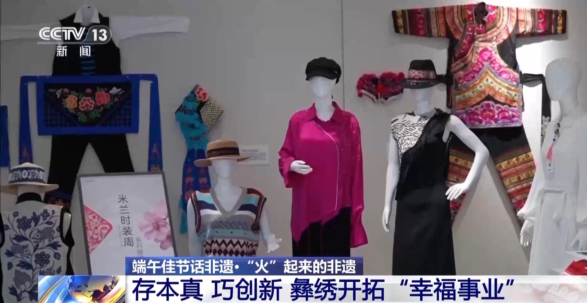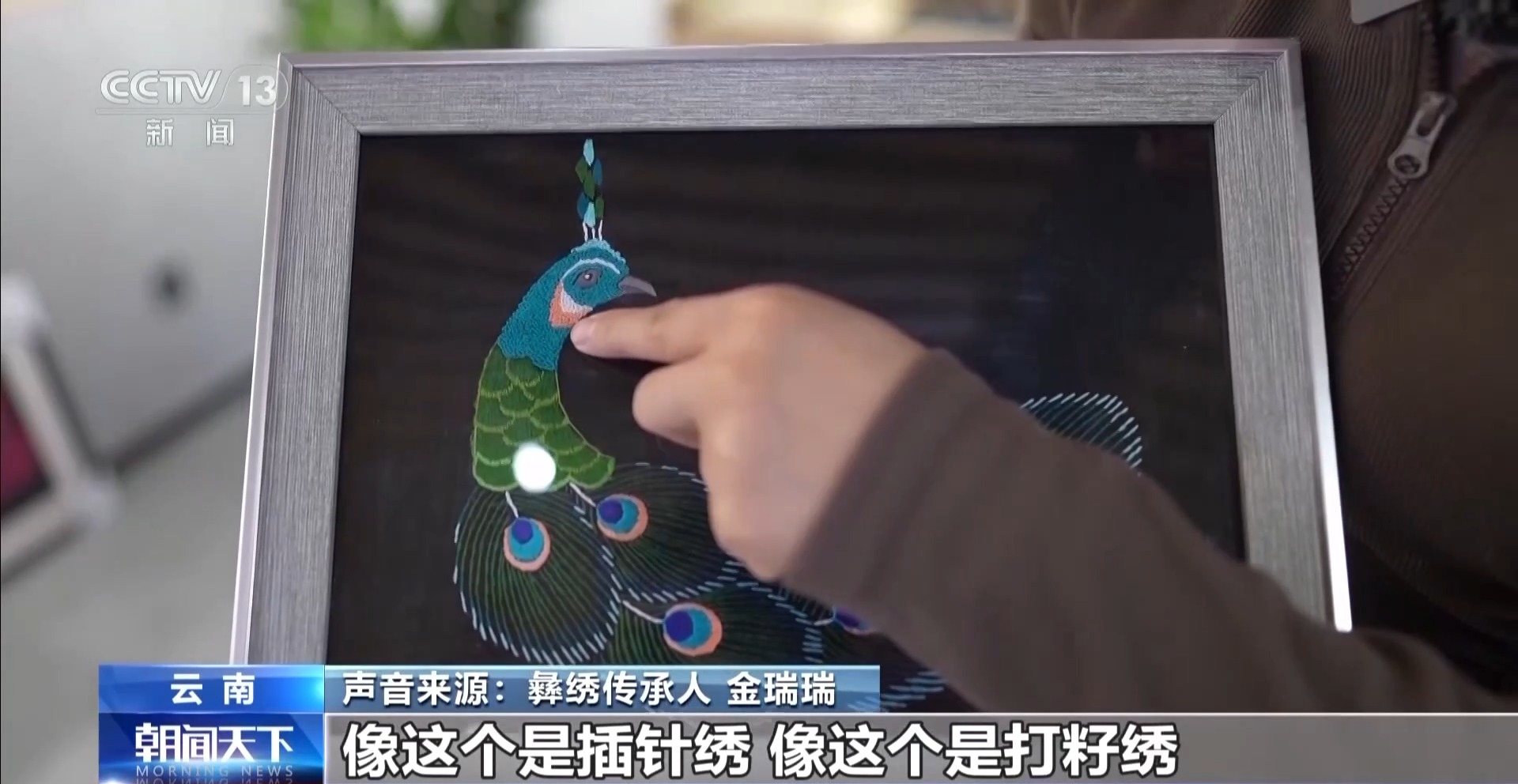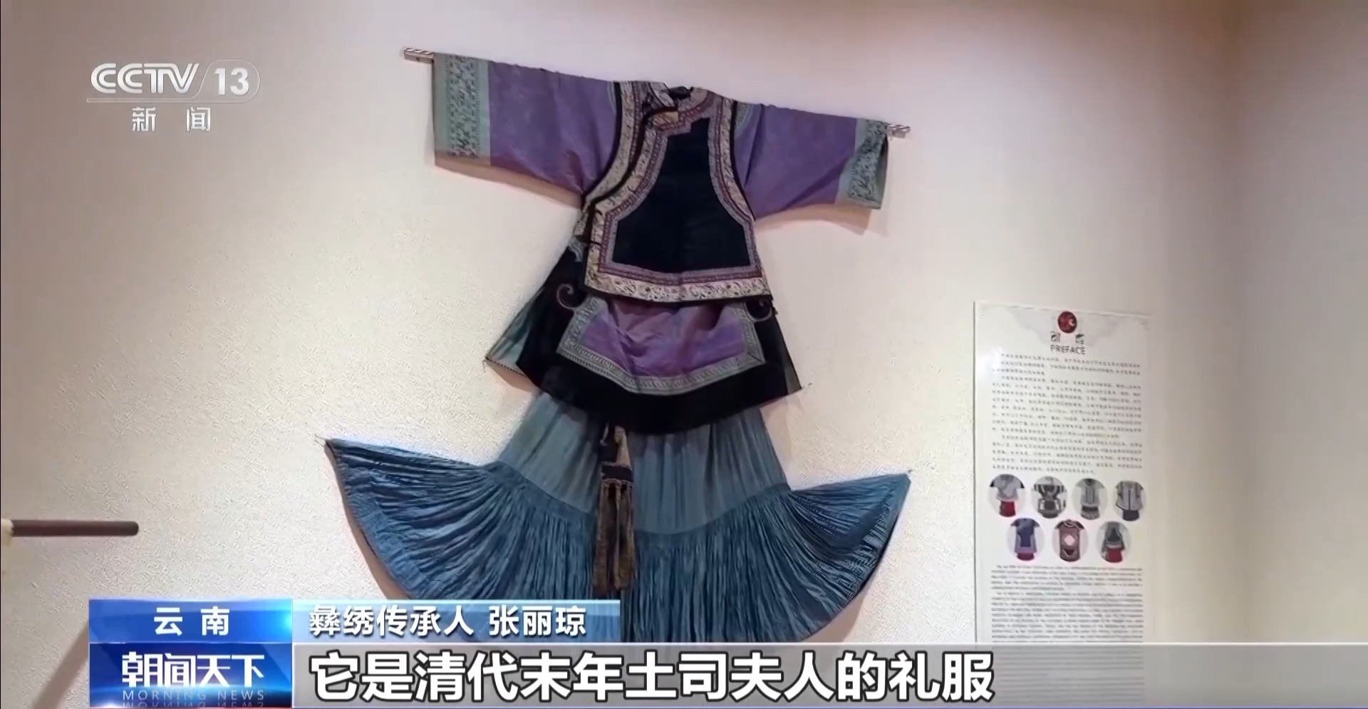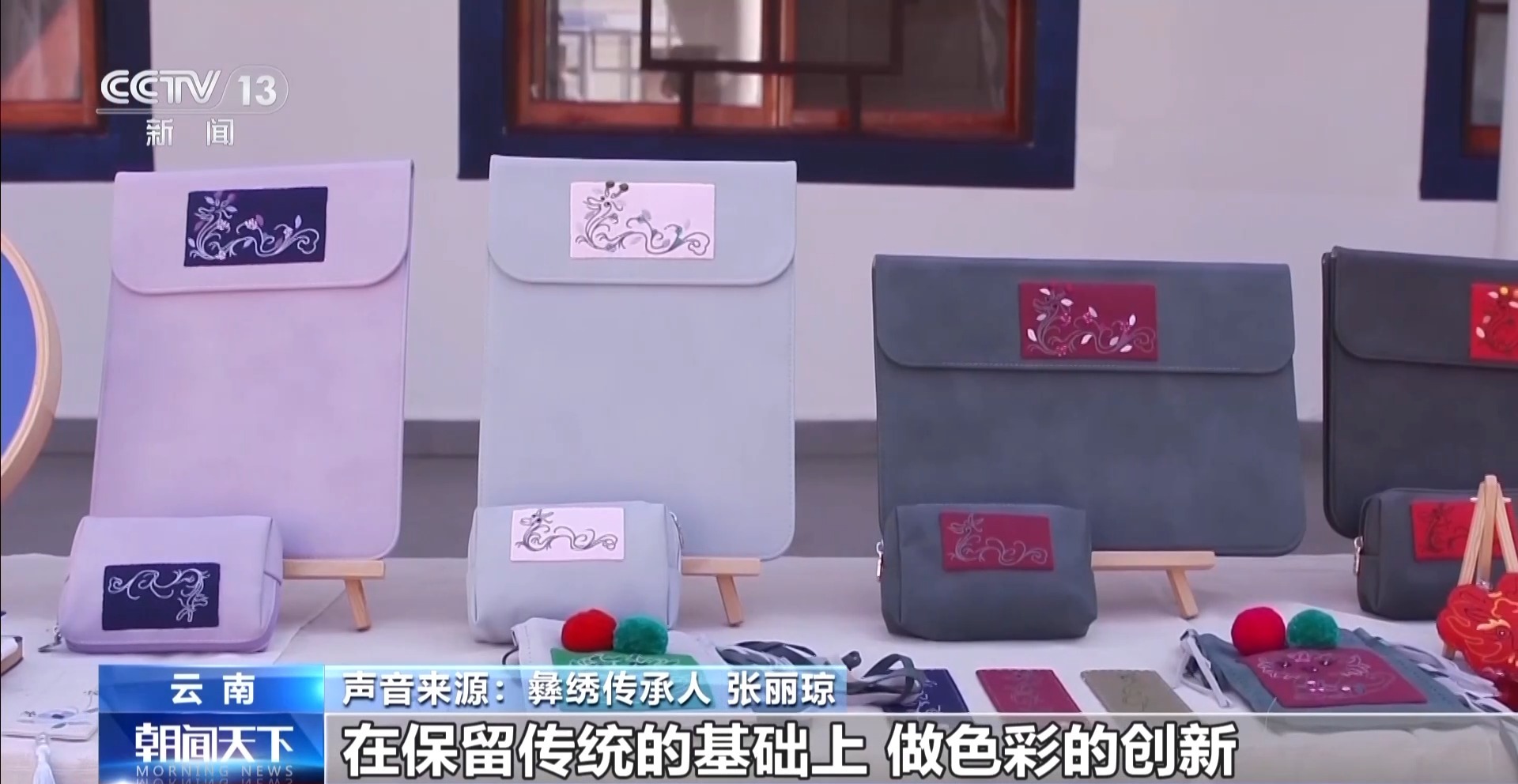 总台记者 李腾飞:楚雄是全国两个彝族自治州之一,这里有句话叫“十里不同天,隔山不同服”,说的就是彝绣的丰富与多样。我身后就陈列展示着许多有代表性的彝绣作品。