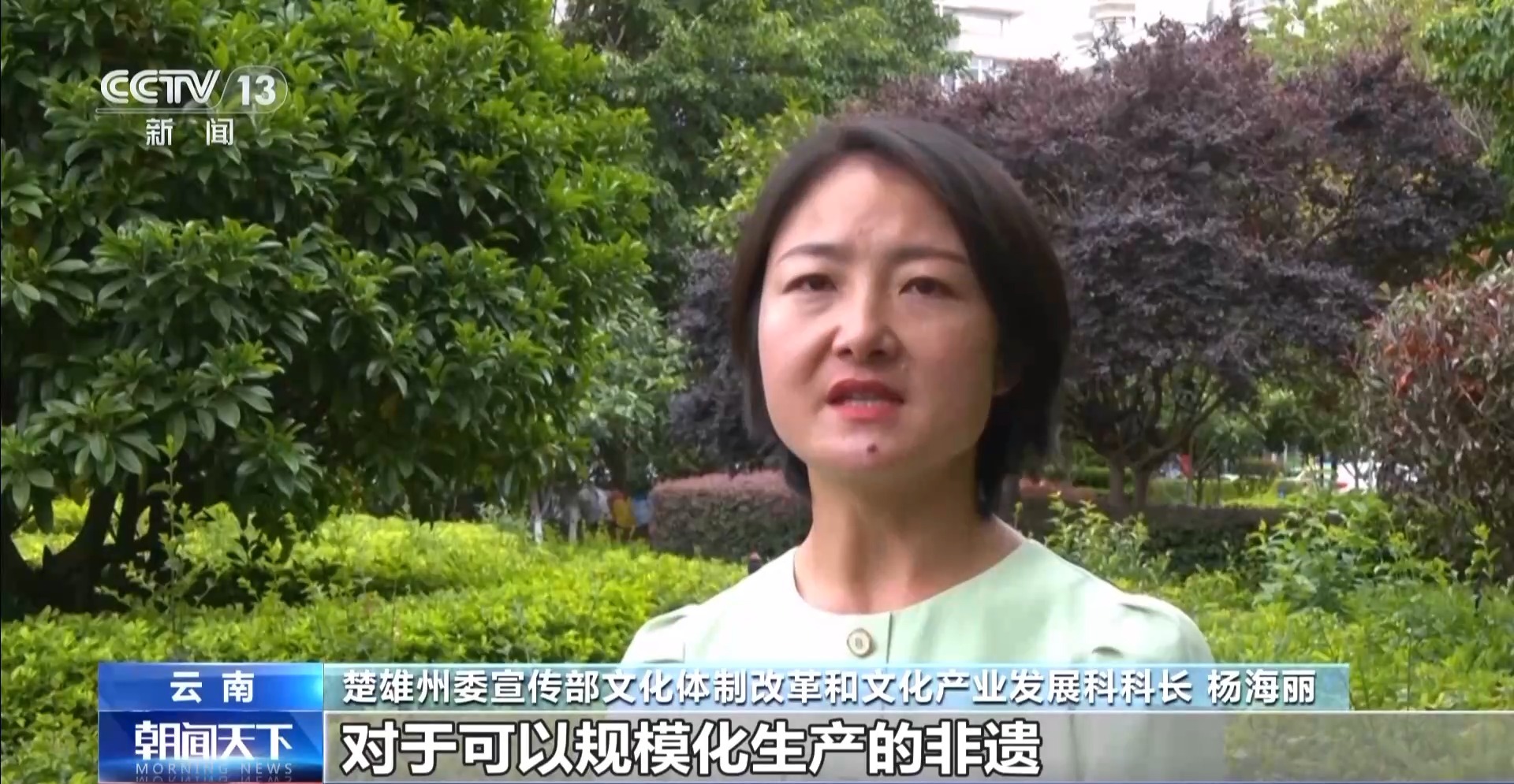 楚雄州委宣传部文化体制改革和文化产业发展科科长 杨海丽:对于可以规模化生产的非遗,我们提倡生产性保护。适当引导非遗工艺加大与创意设计的融合力度,推动产品开发向多元领域拓展,变成文化产品、时尚产品、潮流产品。
