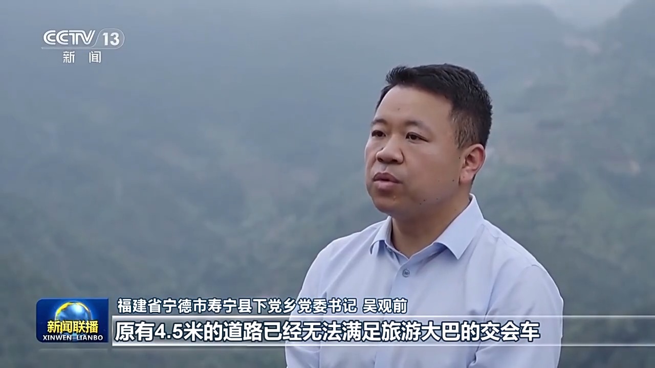 福建省宁德市寿宁县下党乡党委书记 吴观前:原有4.5米的道路已经无法满足旅游大巴的交会车,农村道路单改双,交通更便捷了,四通八达的农村公路是我们的致富路、振兴路。