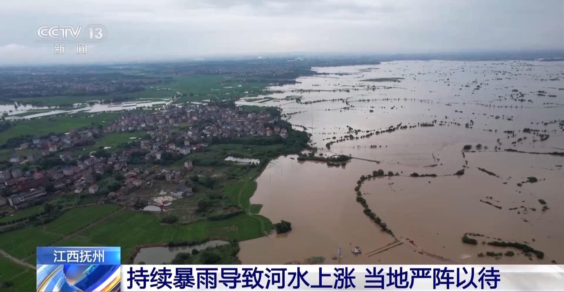 江西抚州:持续暴雨导致河水上涨 当地严阵以待