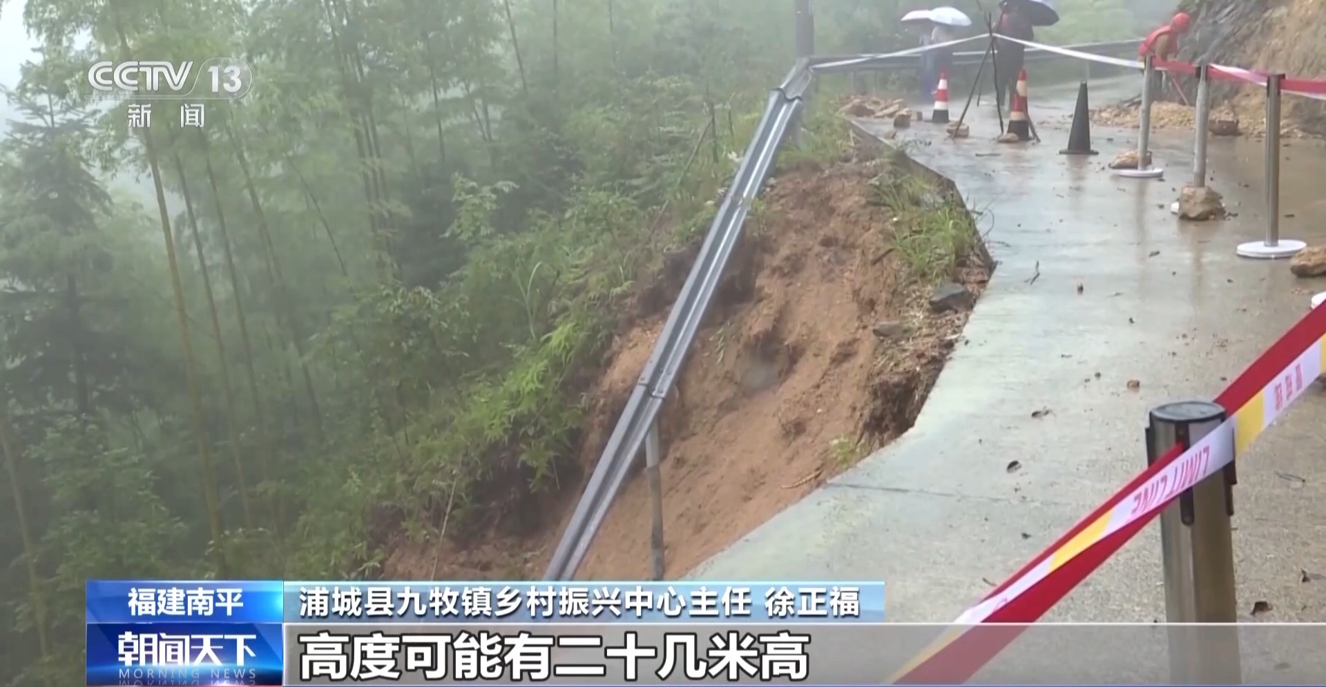 浦城县九牧镇乡村振兴中心主任 徐正福:塌方量还是比较大的,高度可能有二十几米高,11日就把全线的路封闭掉了。下一步我们的初步方案是往里面拓宽。