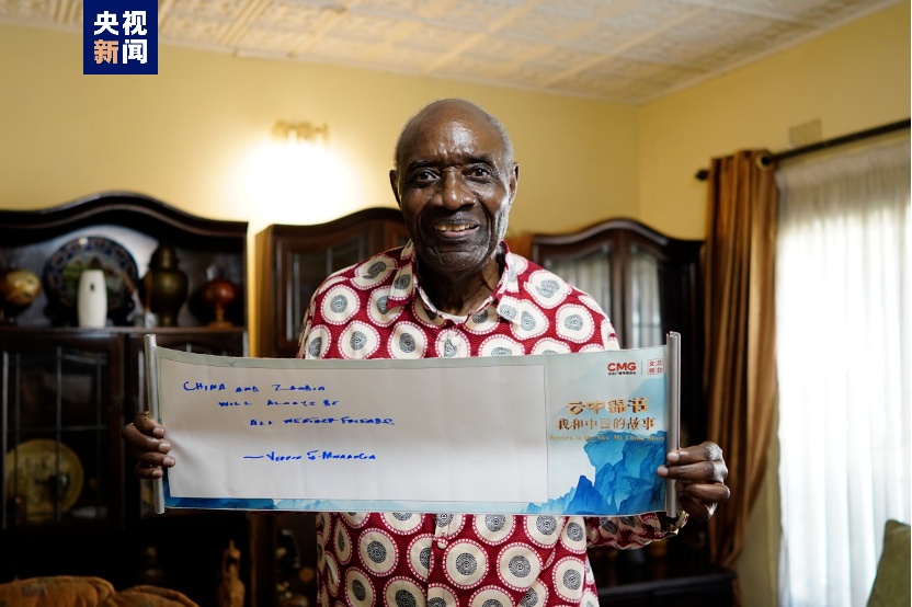 姆旺加说,他曾先后19次到访中国,亲眼见证了那里发生的翻天覆地的变化,2024年正值中赞两国建交60周年,他计划今年下半年再次前往中国,去看一看中国式现代化的高质量发展成果,尤其是中国在航天领域的跨越式发展。最后,姆旺加还为总台“云中锦书:我和中国的故事”全球征集活动题字留念。姆旺加深情地说,中赞两国人民深情厚谊牢不可破,千言万语汇成一句话就是“中国和赞比亚将永远是全天候朋友。”