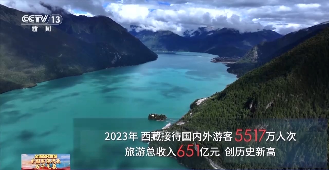 2023年,西藏接待国内外游客5517万人次、旅游总收入651亿元。