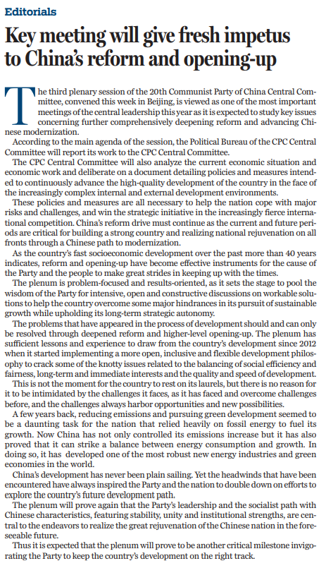 原文标题:Key meeting will give fresh impetus to China's reform and opening-up