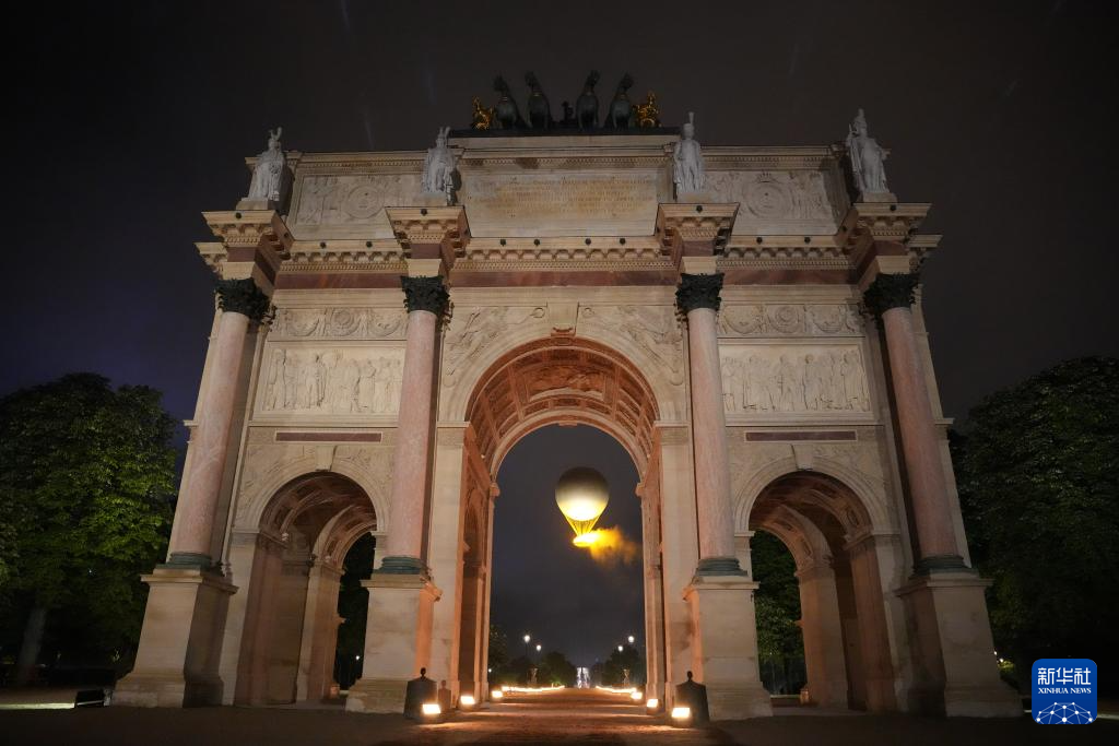 7月26日,热气球状的主火炬在杜乐丽花园点燃。新华社记者 薛宇舸 摄