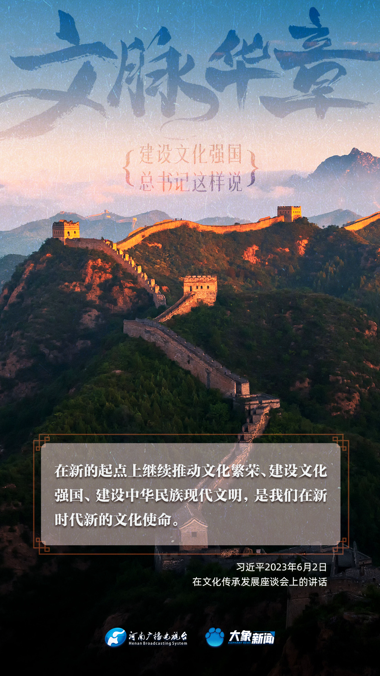 党的十八大以来,习近平总书记站在全局和战略高度,就建设社会主义文化强国提出一系列新思想新观点新论断,为我们坚定文化自信,坚持中国特色社会主义文化发展道路,提供了指引。大象新闻与您一起学习、领悟。