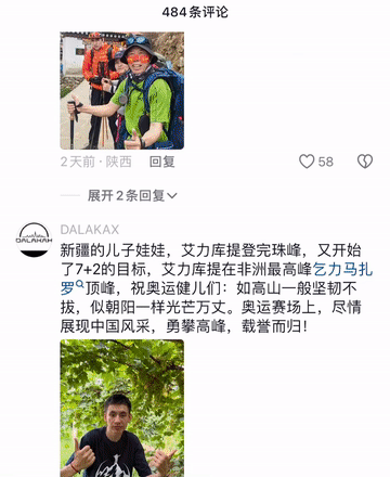 网友纷纷在评论区留言祝福这位少年:“新疆儿子娃娃好样的!”“为你骄傲”“安全登顶,平安归家”