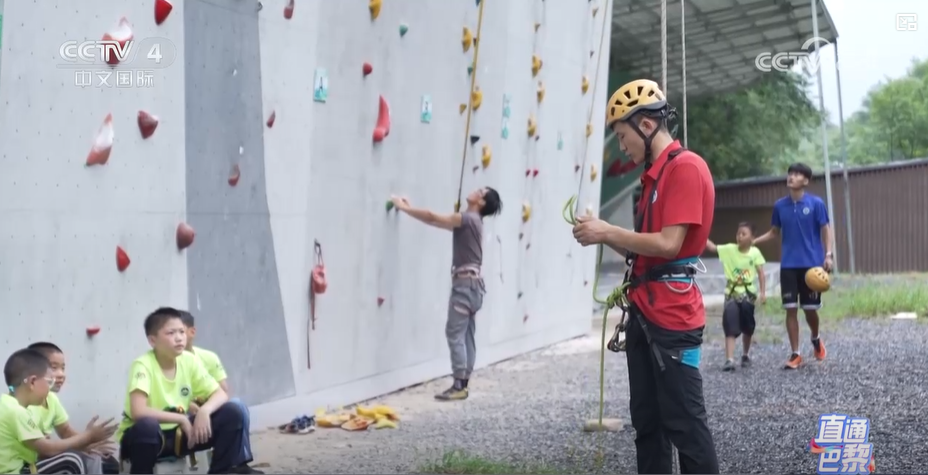 天岩体育户外运动培训中心教练 甘计从:因为现在随着攀岩的入奥,在亚运会等各种大型赛事被纳入进来之后,喜欢攀岩的孩子越来越多。攀岩主题研学还可以教授孩子一些其他的技能,比如说救护,还有一些攀登知识,让孩子更好地发展自己的爱好。