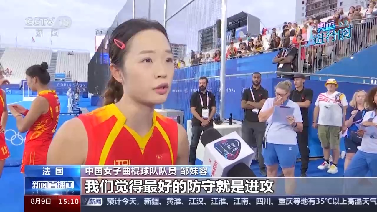 中国女子曲棍球队队员 邹妺容:我们觉得最好的防守就是进攻。不会给他们任何机会,我觉得我们比他们拼。