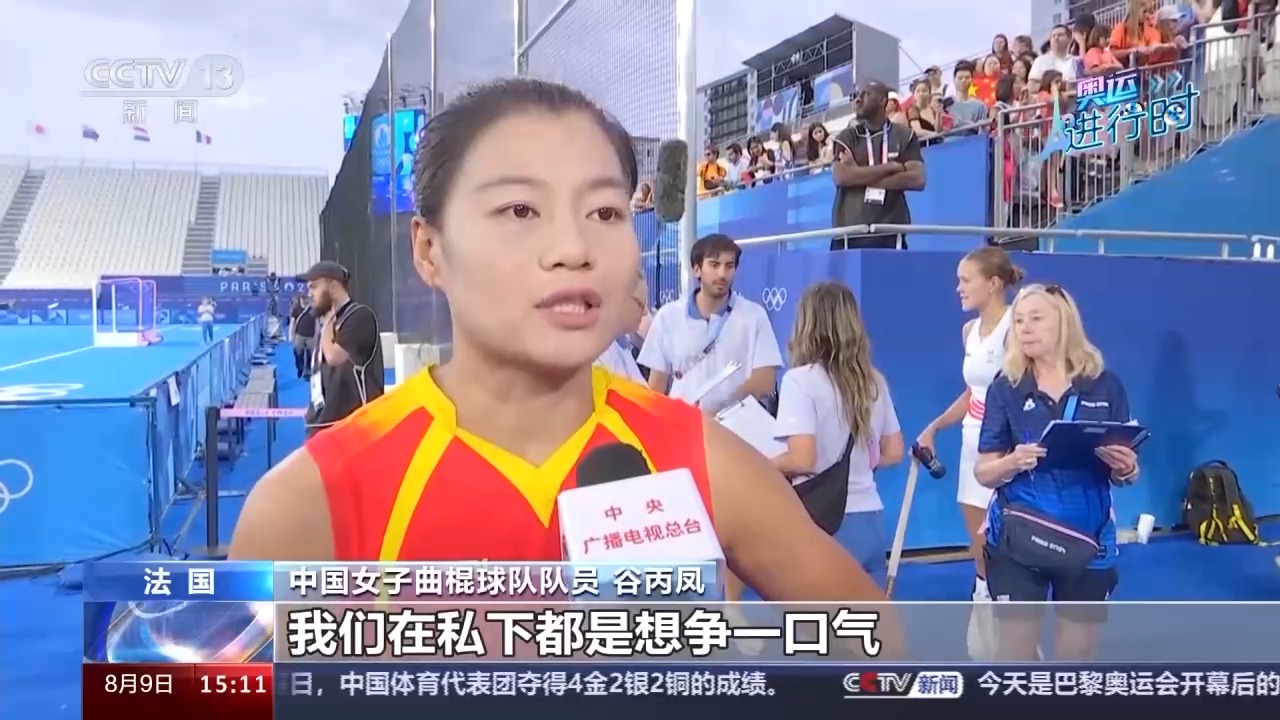 中国女子曲棍球队队员 谷丙凤:我们在私下都是想争一口气,在训练当中都拼命跑,要在每一场高水平的比赛中都要跑出两倍的速度,在中国队队员里面没有一个要放弃的,都是冲冲冲,因为我们都有一个目标,就是要站上领奖台。我们已经在谷底了,我们就是中国女曲必须站起来的那个,我们就是顶梁柱,我们不可以放弃。
