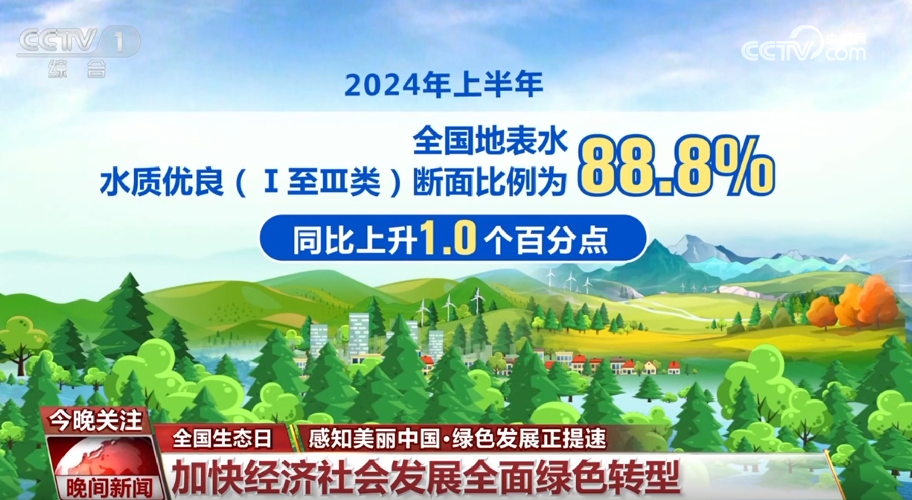 央视网消息:8月15日是2024年全国生态日。今年的主题是“加快经济社会发展全面绿色转型”。万里河山,生机盎然。接下来通过一组数字感受绿色发展正提速,绿色版图持续扩展。