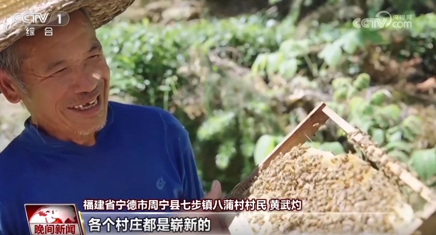 福建省宁德市周宁县七步镇八蒲村村民黄武灼开心地说:“很多人来买我的蜂蜜,一百元一斤,一年就是三万多元。现在这变化,各个村庄都是崭新的,面貌都改了,和原来就不一样了。”