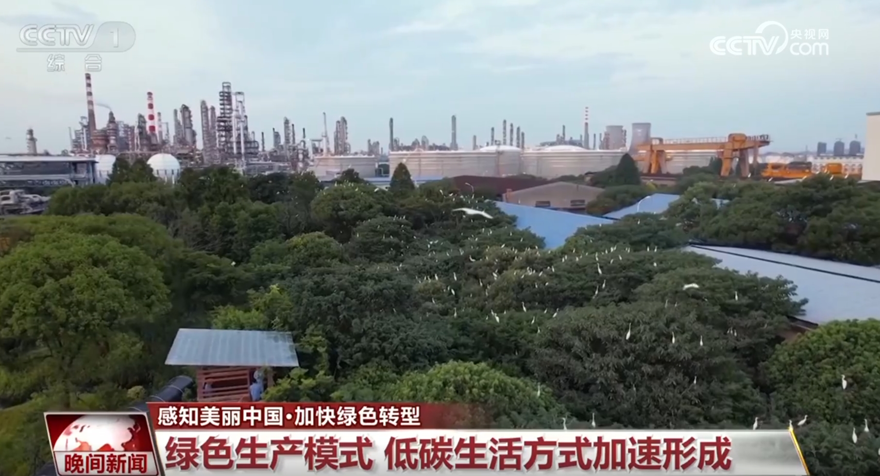 生态效益和经济社会效益的协同发展,还体现在绿色低碳生产方式不断丰富。近期,一大批绿色工厂、低碳工厂、零碳园区加速建设。在浙江宁波的这家石化冶炼企业,通过自主研发的污水分离净化技术,可以将石油炼制时产生的含油污水处理成饮用级别的水。无污染的园区里甚至建成了生态园,40多种鸟类来到这里生活,这里还被联合国纳入了全球企业生物多样性保护案例。