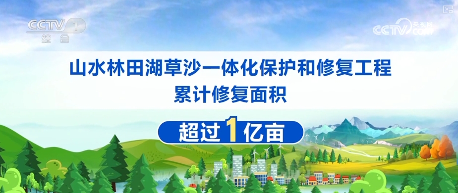 我国人工林保存面积、草地面积世界第一。山水林田湖草沙一体化保护和修复工程累计修复面积超过1亿亩。天更蓝、水更清、地更绿的美丽中国新画卷正徐徐展开。