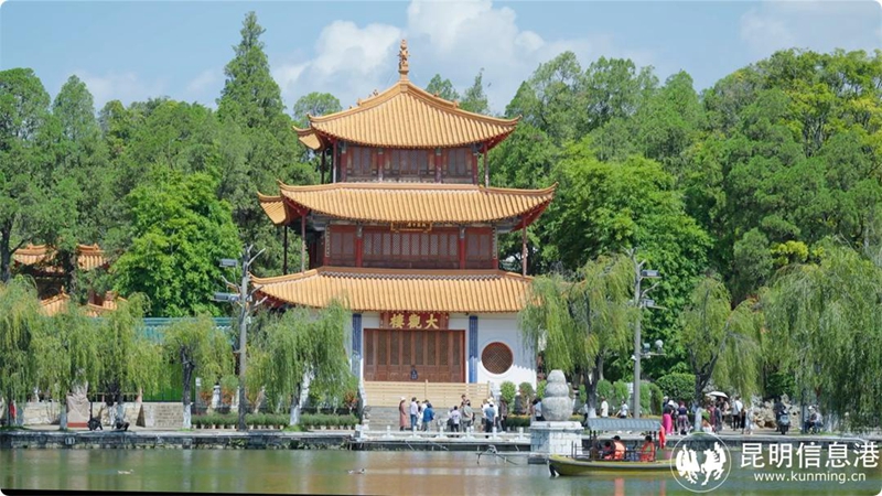 大观楼:始建于明朝洪武元年(公元1368年),并在清康熙三十五年(公元1696年)建大观楼,公园因此而得名。公园占地面积达700余亩,是昆明市区最大的公园。园内有众多景点,包括大观楼、近华浦古建筑群、牧梦亭、涌月亭及沿湖长廊等。近华浦完好保存着自清康熙二十九年(1690年)以来兴建的古典园林建筑群,其中包括四方八角穿心重檐门楼,单檐歇山雕花门窗的催耕馆、观稼堂、澄碧堂等古建筑,造型别致,既反映中国清代古建筑的风格,又具有云南地方民族建筑的特色,是云南清代园林建筑的博览苑。乾隆年间,名士孙髯翁登大观楼有感而发,撰写了著名的一百八十字长联,生动地将滇池风光和云南数千年历史展现在世人面前。此长联一出即惊动四方,人们争相传颂,名扬天下,被誉为“海内第一联”。