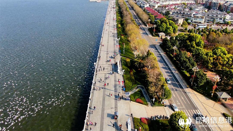 海埂大坝:海埂大坝除了是观鸥圣地之外,还是老昆明厚重的人文情怀的名片,是展示城市风情的艺术走廊。漫步在长长的堤坝上,放眼望去,映入眼帘的是草海与西山,迎面吹来凉爽的风,这一刻远离了高楼林立的市区,寻到一种释放。堤坝上的滇池历史浮雕墙、聂耳雕塑、郑和雕塑、滇池名人等艺术作品,是古老昆明日新月异变化发展的见证者,它传承着历史的文脉,记载着风霜雨雪的历史过往。这些丰富的历史、文化、艺术元素,装扮了大坝,将大坝变成了一段展示历史和艺术的文化长廊。