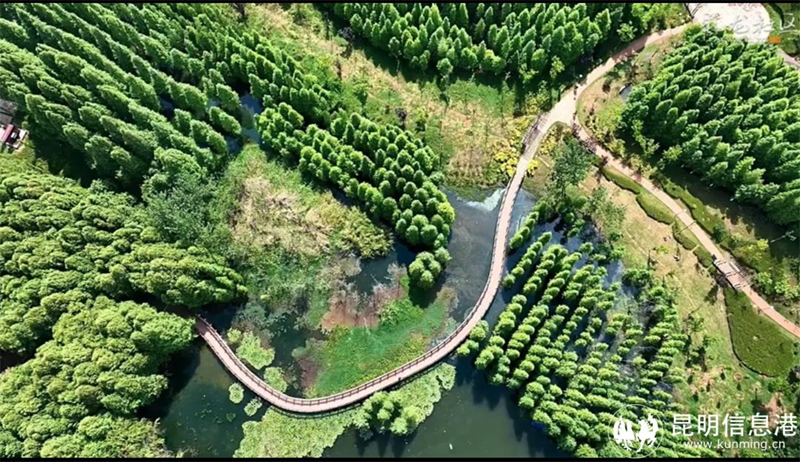 宝丰湿地公园:位于?昆明市?官渡区,是?滇池东岸的一个重要湿地公园,占地面积约1633.8亩。该湿地公园以生态环境复育为核心,以水质净化为基础,通过选择适合滇池周边环境条件的生态群落配置,逐步形成水生-湿生-陆生复合生态带,旨在恢复和保护滇池湖滨生物多样性。宝丰湿地公园不仅是?COP15生物多样性室外展示基地之一,还分区域打造了湖内湿地展示区、观鸟廊、?九夏芙蓉、?四围香稻、?沉水廊道、水净化展示区等景观,展示了云南本土植物、鱼类和禽类,集中展现了云南物种多样性、遗传多样性和生态多样性。此外,宝丰湿地公园还通过沉水廊道等特色生态廊道,让游客能够近距离接触并观察滇池的本地野生鱼类,体验自然的魅力。公园内生态环境良好,培育了大量的珍稀动植物,是昆明推进滇池保护治理、生态修复的一个缩影。宝丰湿地公园的设计和建设将山、水、林、田、湖、草作为有机统一的整体进行考虑,致力于营造人与自然和谐共生的自然湿地,展现出昆明“山、水、城”相融共生的独特城市风貌。
