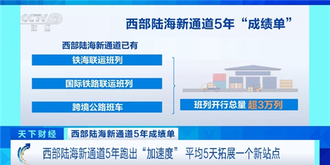2019年8月,国家发展改革委印发《西部陆海新通道总体规划》,标志着通道建设从地方探索上升为国家战略。5年来,西部陆海新通道已有铁海联运班列、国际铁路联运班列、跨境公路班车3种物流组织方式,班列开行总量超3万列。目的地从71个国家和地区的166个港口,拓展到124个国家和地区的523个港口,也就是平均5天拓展一个新站点。