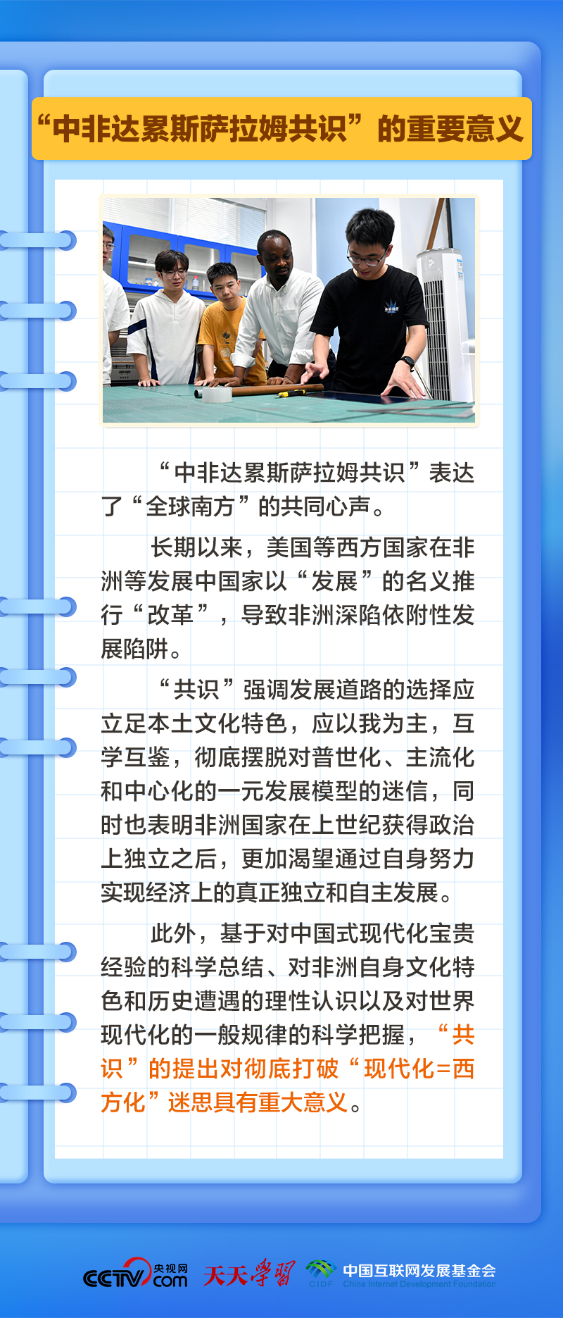 “中非达累斯萨拉姆共识”是在怎样的背景下形成的?这一共识的核心内容有哪些?习主席为何在复信中提到这一共识?央视网《天天学习》栏目推出学习笔记,与您一起学习、研读。