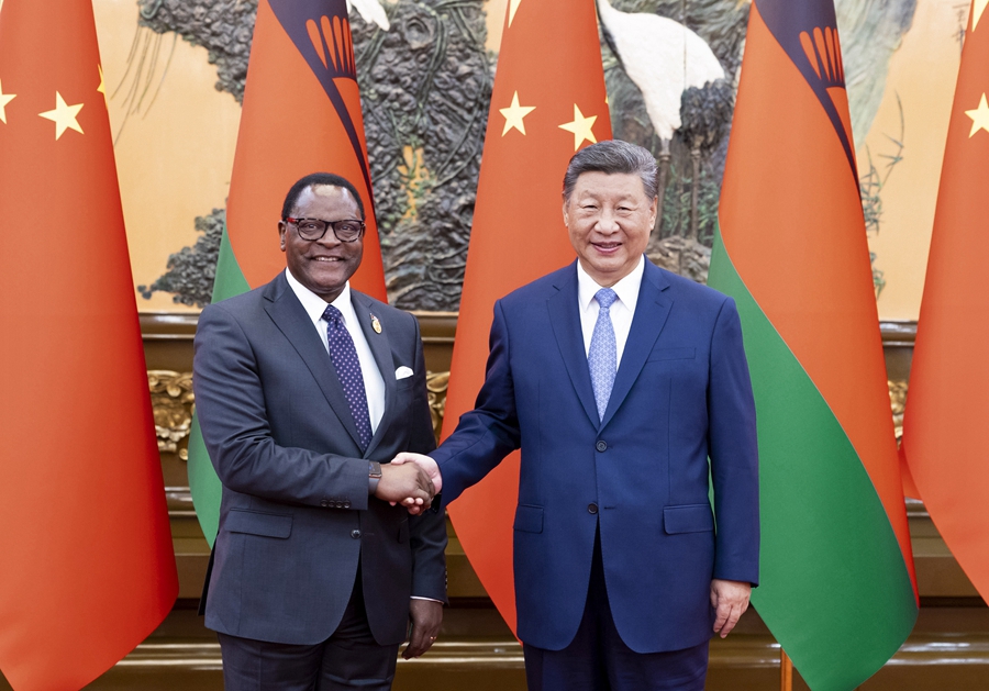 9月3日上午,国家主席习近平在北京人民大会堂会见来华出席中非合作论坛北京峰会的马拉维总统查克维拉。 新华社记者 翟健岚 摄