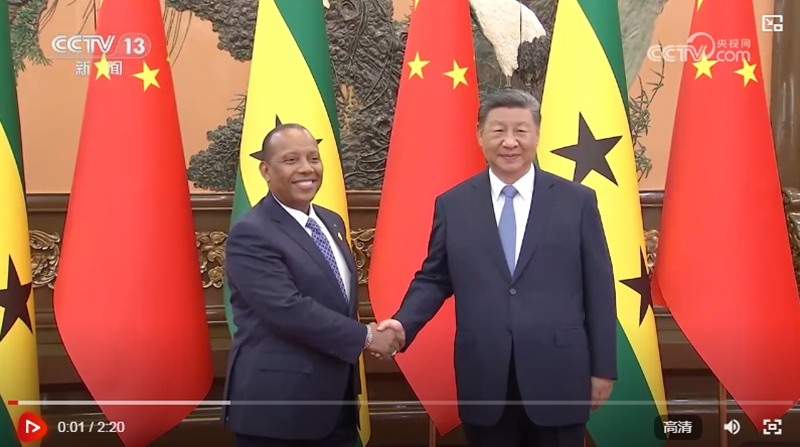 习近平指出,近年来,中国同圣多美和普林西比关系保持良好发展势头,两国各领域务实合作成果丰硕。事实证明,圣多美和普林西比重新回到中非友好合作大家庭,完全符合两国人民共同利益。中方将一如既往支持圣多美和普林西比推进国家建设和经济发展的努力,愿同圣普方积极落实此次中非合作论坛北京峰会成果,推动两国战略伙伴关系更好造福人民。