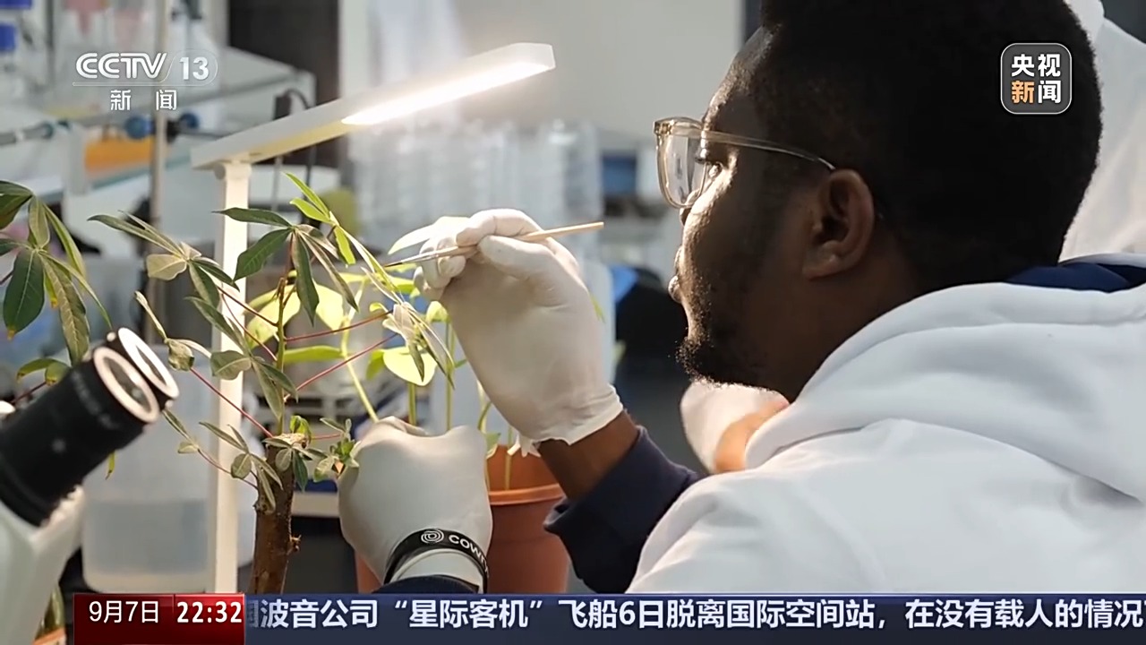 尼日利亚留学生 格雷戈里:我来中国的目的是培育抗虫害的木薯品种。防治虫害的费用很高,如果我们能开发出绿色解决方案来帮助减少虫害,那么控制虫害的成本就会很低。这将促进经济发展,使人们能够摆脱贫困。
