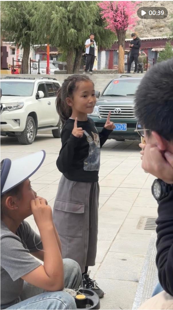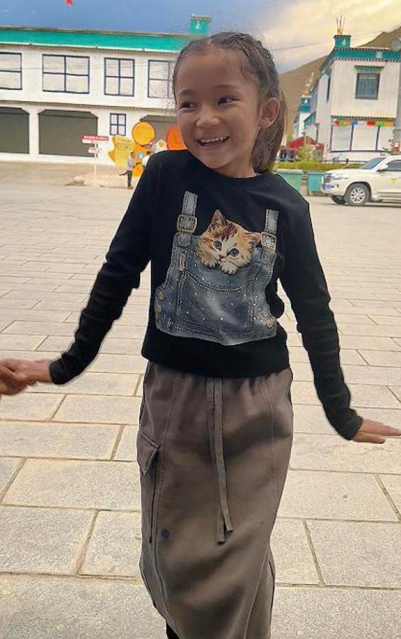 9月7日,在西藏山南,藏族小女孩丹增兰泽,正在随音乐舞动,落落大方。