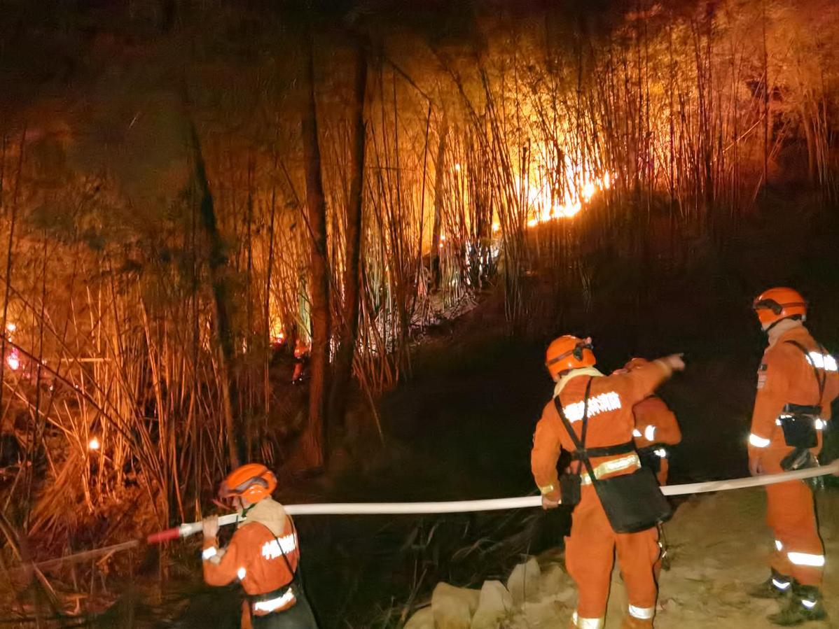 今年3月21日,甘南州夏河达麦乡发生森林大火,大队接总队命令后迅速出动近百名指战员奔赴火场。