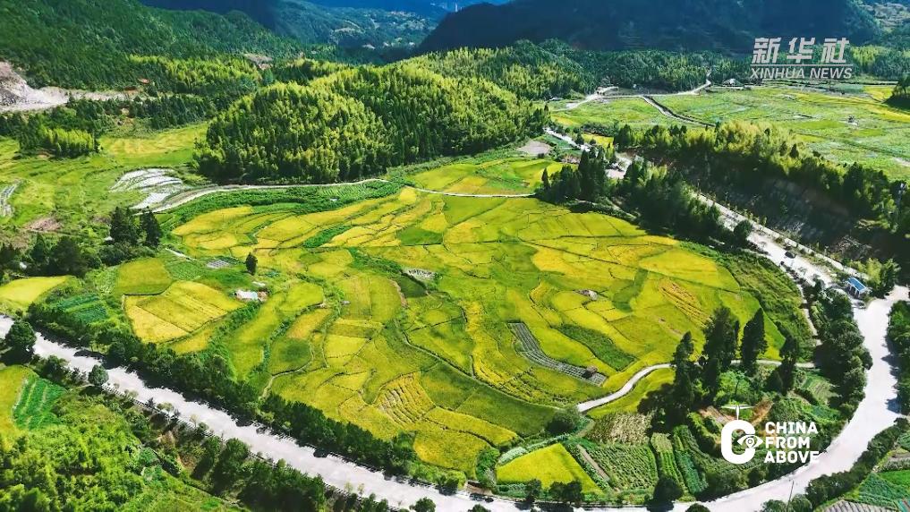 初秋时节,走进福建省宁德市寿宁县大安乡大熟村,映入眼帘的是一片渐黄的稻田。稻田轻铺于广袤的天地间,每一行每一列,仿佛蕴含着生命的韵律与自然的哲思。微风拂过,稻田泛起层层细腻的波纹,宛如金色海浪,美不胜收。