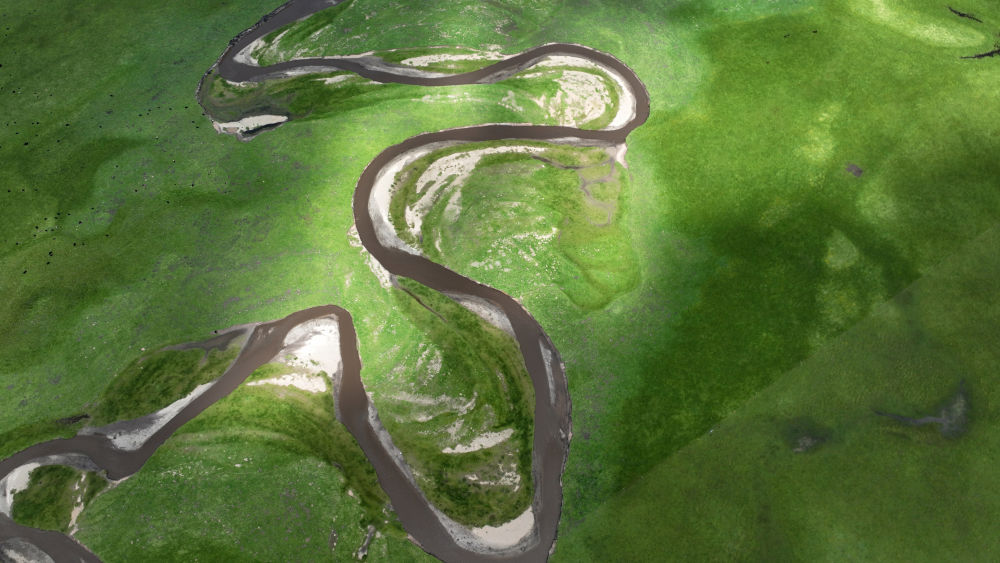 2024年5月9日在陕西省宝鸡市拍摄的黄河最大支流渭河沿岸景色(无人机照片)。