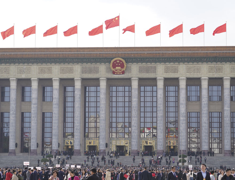 2024年3月11日,第十四届全国人民代表大会第二次会议在北京人民大会堂举行闭幕会。这是闭幕会后,代表们走出人民大会堂。