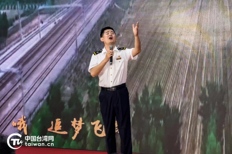 列车长演唱主题曲《追梦飞翔》。(中国台湾网记者 刘佳辰 摄)