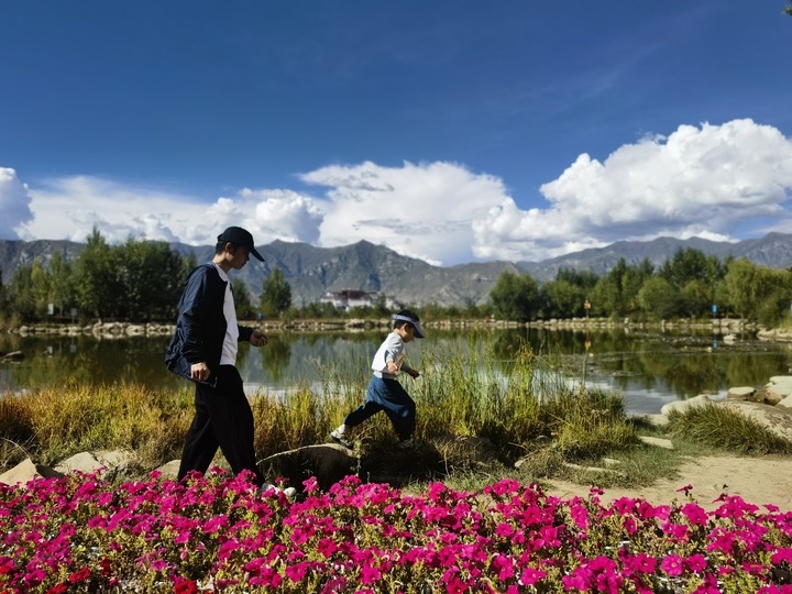 2024年9月1日,游客在拉萨南山公园游玩。新华社记者舒静 摄
