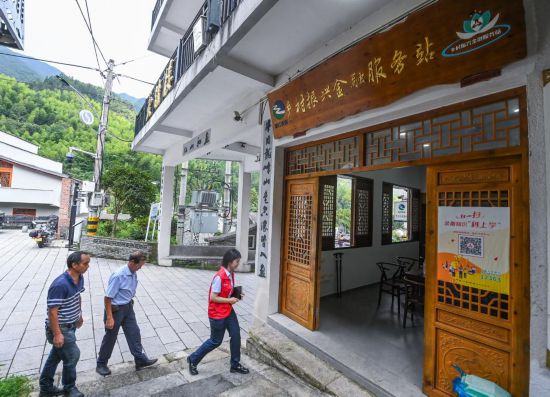 在浙江省丽水市青田县方山乡的乡村振兴金融服务站内,青田农商银行服务队志愿者上门服务,打通金融服务“最后一公里”。新华社记者徐昱 摄