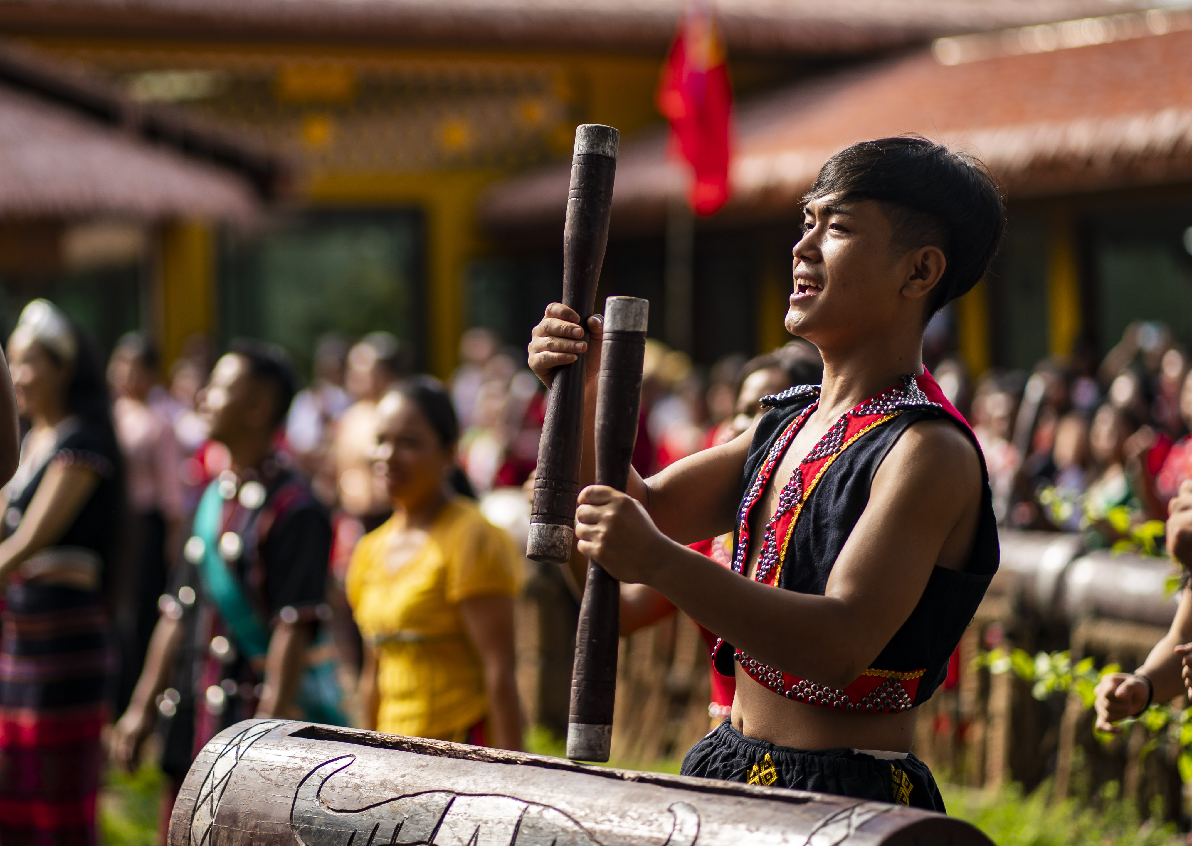 云南省沧源县班洪乡班洪村的佤族群众唱响《阿佤人民唱新歌》(2021年8月20日摄)。