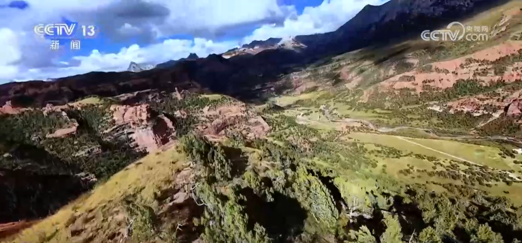 记者身旁的这片“红石之地”是青藏高原发育最完整的白垩纪丹霞地质景观,天地纵横间,嶙峋的山石将澜沧江源头装点的格外壮美。