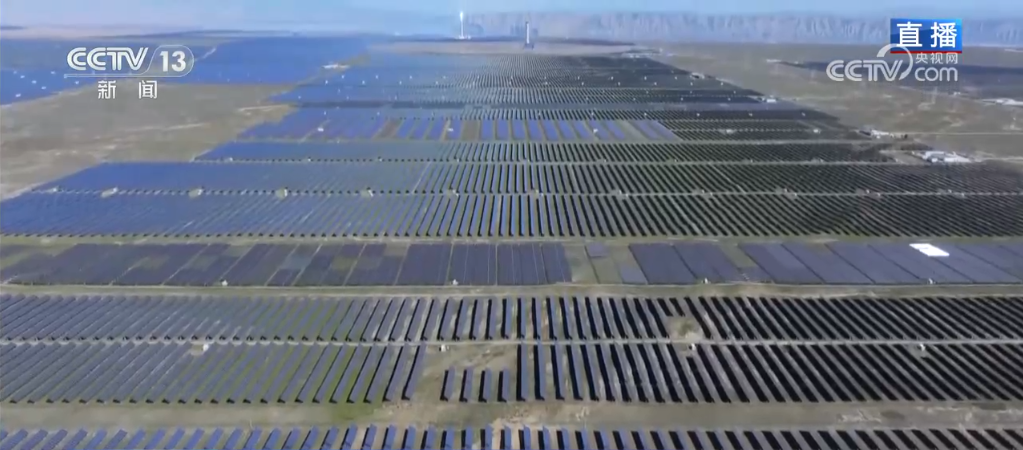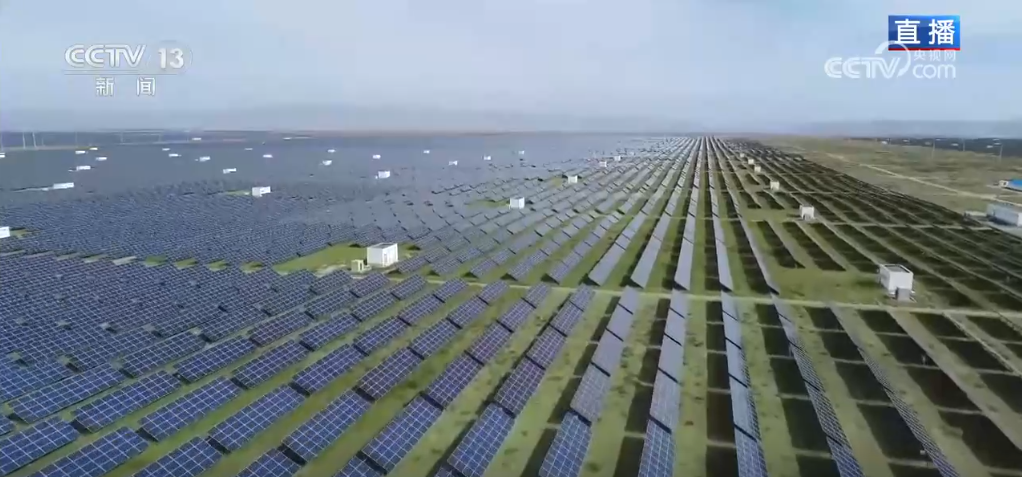 这些光伏组件从厂房里生产出来,去到了哪里来实现它们的绿色能源使命呢?答案就在记者的身后,青海省海南州塔拉滩——全球装机容量最大的光伏发电园区。这里光照资源丰富,在600多平方公里的土地上,光伏发电面板如同深蓝色的海洋一样铺满了大地,在这里吸收的太阳的能量,把阳光转化为电能。