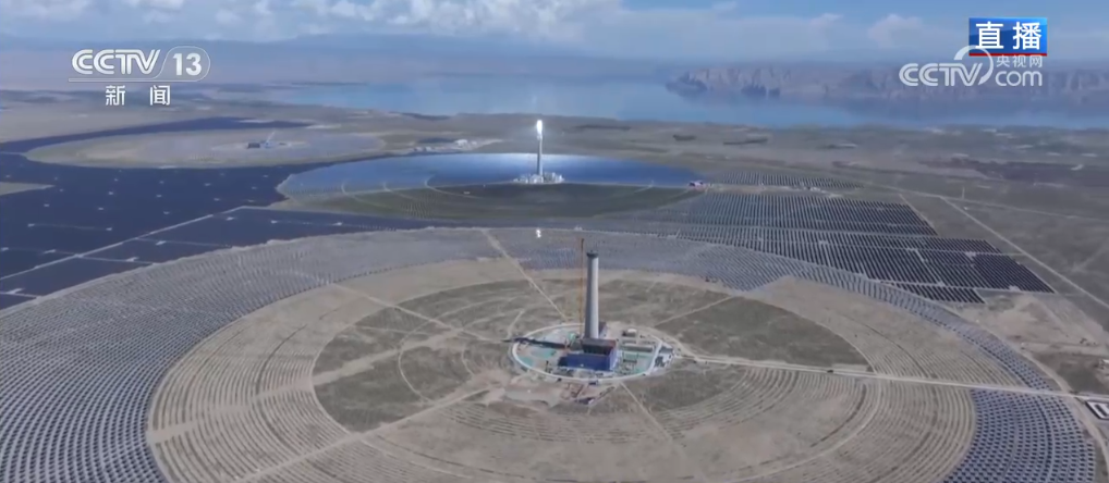 明年,这座年发电量达2.3亿度的光热电站也将投入使用,2万多台定日镜反射70万平米的阳光,形成560多度的高温,将特殊的热融盐融化,再输送到地面上的发电厂房里,慢慢地释放太阳的能量,发出绿色的电力。